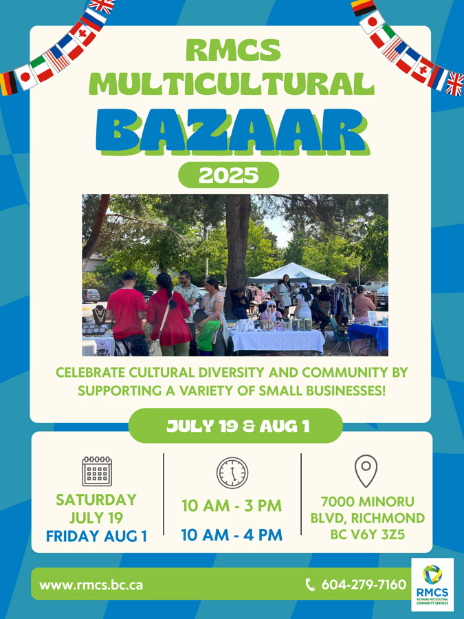 Hosted by Richmond Multicultural Community Services (RMCS), this bazaar celebrates cultural diversity and the community by showcasing a wide range of local small businesses. RMCS is dedicated to promoting an inclusive society that values equality and diversity, particularly focusing on immigrant and refugee communities.