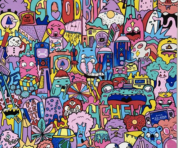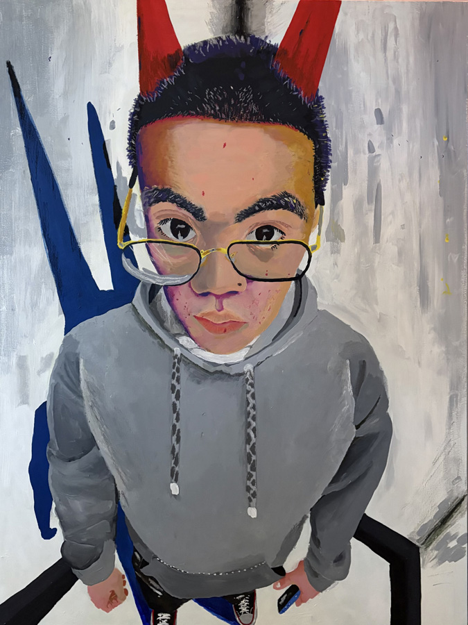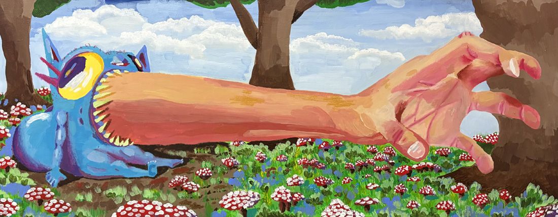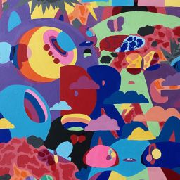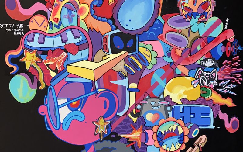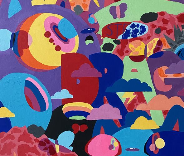 Reigning from Richmond British Columbia, Erizyan Ailys Camasosa is a 17 year old acrylic painter whose work is characterized by small intricate detail and exploring different ways to utilize color. Drawing inspiration from personal experience and the vibrancy of the 1980s, their practice involves oil pastels, acrylic paint, dollar store brushes, ambition and experimentation to explore what it is to be human. Their work has been featured in multiple art gallery walks at McMath secondary school. Erizyan continues to develop their practice through different material, implementing philosophy, and events that life has to throw at them. Through their art, Erizyan strives to question the viewer, what is life to you? Are we all just lost dogs trying to find their way, or do we as individuals have a greater significance on earth?