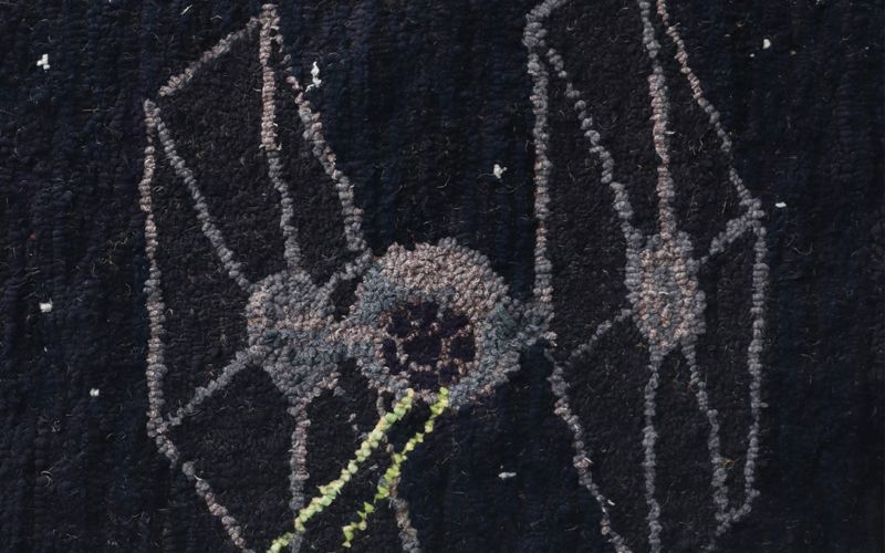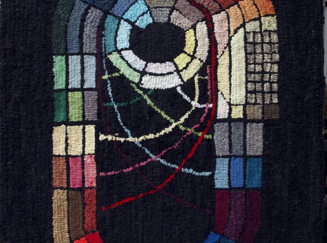 Jamie Girouard is a Vancouver-based textile artist working in the primitive rug hooking tradition. His work blends ideas of cutting edge technologies and human experience with his Acadian heritage. Rug hooking is an old craft that sees woolen materials (usually worn clothing) shredded and hand-hooked through burlap or some other readily available mesh material. Jamie strives to make his work positively contribute to making our world a better place by reducing textile waste by turning what was old into new, functional art.