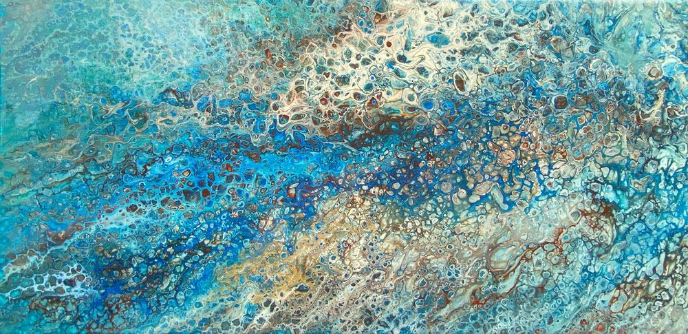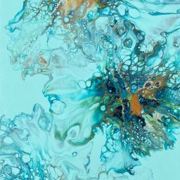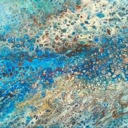 Pour painting has become a spiritual practice for me, offering therapeutic benefits and a sense of gratitude. I am exhilarated by the magical appearance of cells and patterns, which seem to manifest intuitively before my eyes.