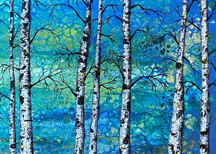 Her work has been featured in numerous juried exhibitions over the past four years. Notably, she was awarded second place in the nationwide Golden Celebration Juried Art Exhibition at Gallery 1710 for her piece “Birch Kaleidoscope.” Through her art, Marika finds freedom and joy, striving to inspire others to embrace creativity in their own lives. Her paintings are available for purchase on Etsy under the shop name MarikaFluidArt.