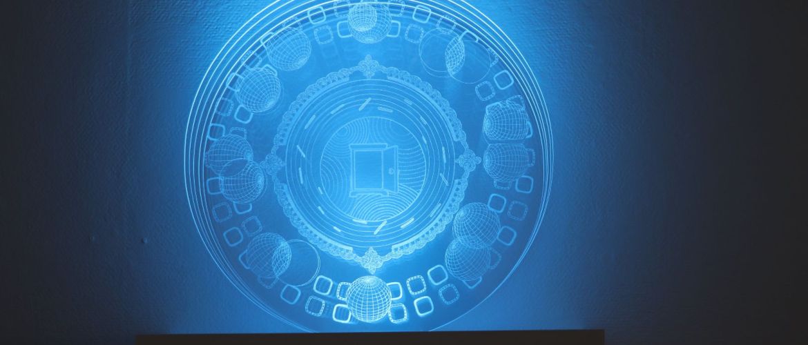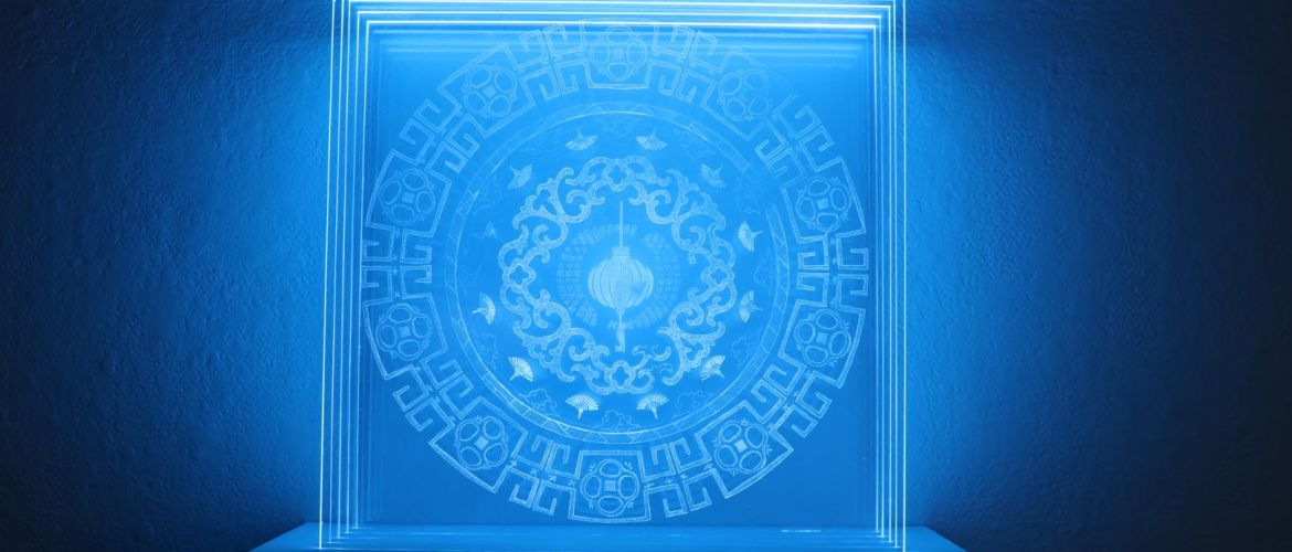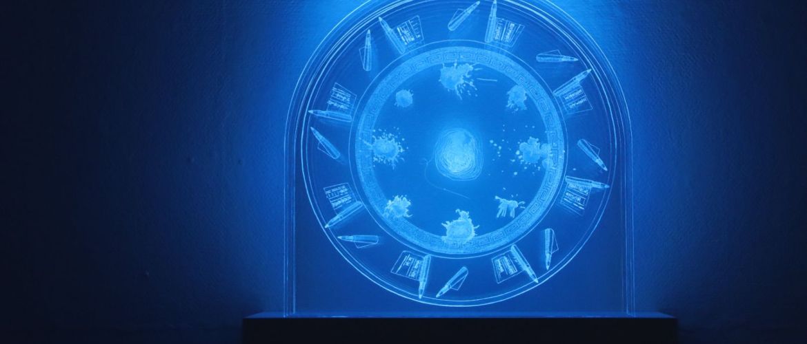 3. Rainy Huang, The rhythms: Future, Plexiglass(5pcs), LED strip light and arduino, 2024, 18’’Dia – circle