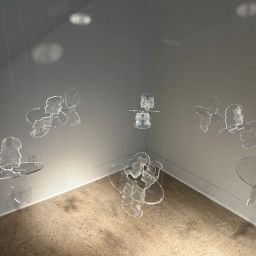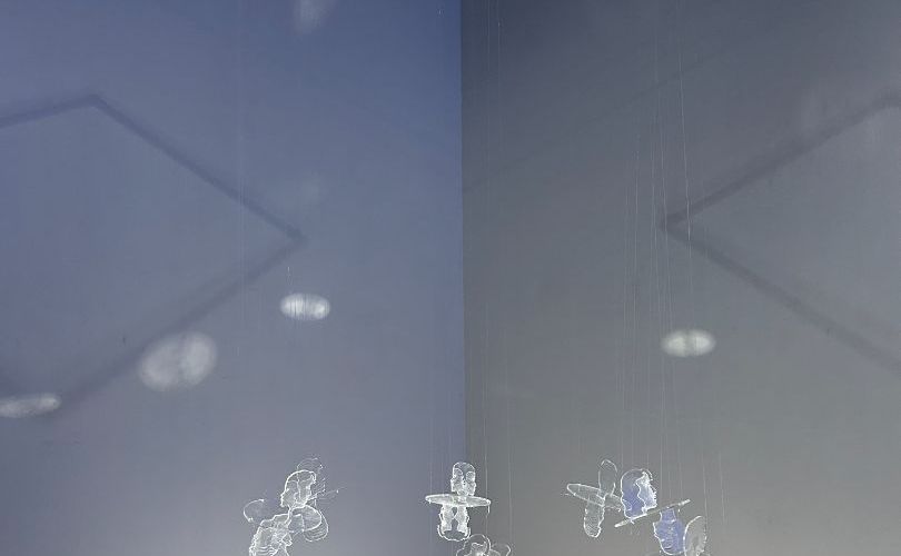 6,Rainy Huang, Parallel Current [detail] Clear film, Clear Elastic Strap, Acrylic half-round rod, 6 layers, 82”x39”, 2024