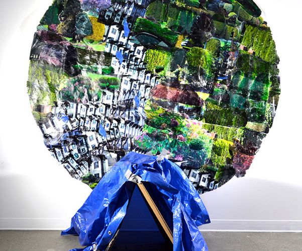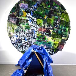Tapping into society’s stream of consciousness by watching daily news programs and reading non-fiction publications, her artwork identifies the complexities in the day-to-day of human existence on this delicately balanced planet. Her practice has been informed by the writings and artworks of Douglas Coupland which encourage audience interaction on a conceptual plane. She constructs multi-medium installations utilizing found objects which re-purpose concrete notions into abstract concepts. Many of her works utilize photo transfer to meld art technique with real world images; creating an undertow of unease as the viewer’s emotional connection to life experiences engage with the art pieces.